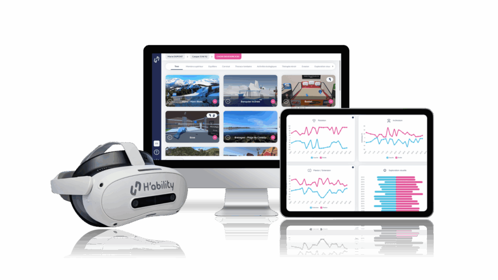 - H’ability HOME : une solution de rééducation immersive en réalité virtuelle, testée notamment par la Fondation Saint-Hélier, qui permet aux patients de suivre des exercices à domicile tout en étant accompagnés à distance par des professionnels.