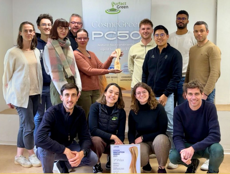 Du coté des ingrédients fonctionnels, le congrès et salon international professionnel SEPAWA (Berlin) spécialisé dans l’industrie des détergents, nettoyants, cosmétiques et parfums, a récompensé Surfactgreen (Rennes). Cette entreprise, engagée dans la chimie verte, a remporté le Premier Prix d’Innovation pour son agent émulsifiant CosmeGreen® PC50, alternative aux démêlants pétrosourcés pour les soins capillaires.