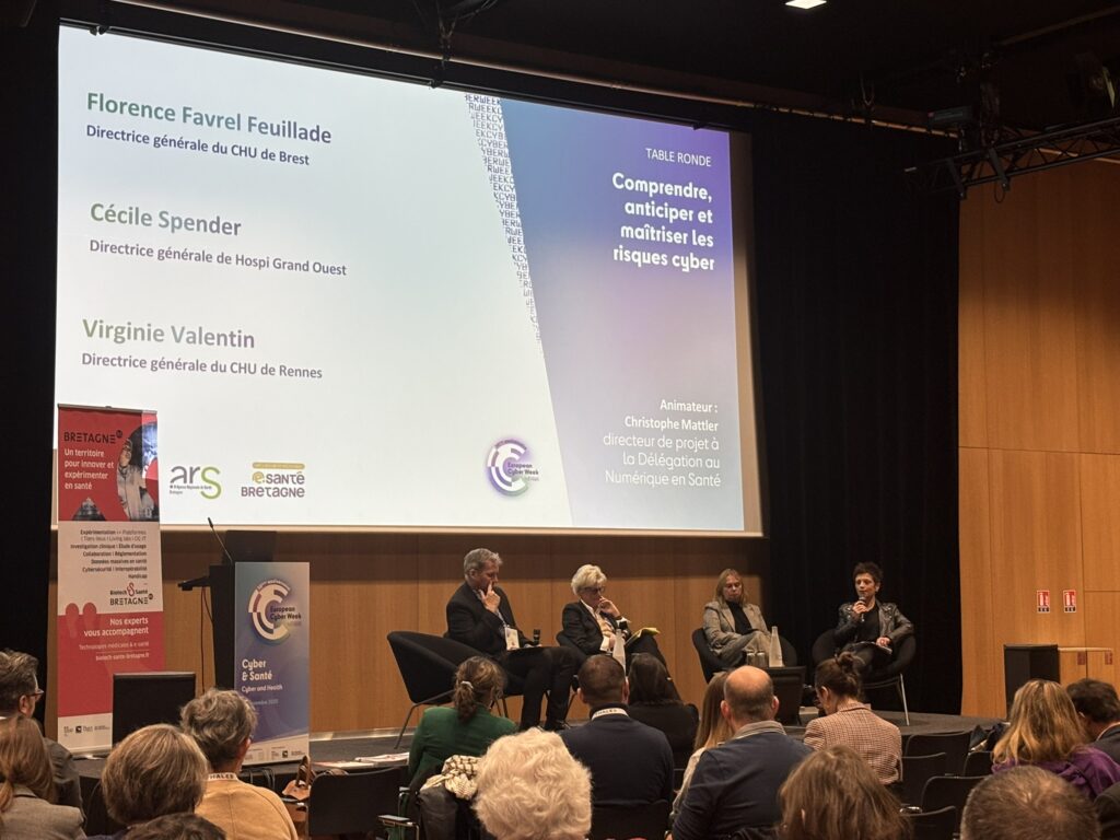La première table ronde a réuni les directions générales du CHU de Brest, du CHU de Rennes et du Groupe Mutualiste Hospi Grand Ouest (Groupe VYV). Elles ont fait un retour d’expérience sur les cyberattaques de leurs établissements au cours des dernières années. Leur constat est unanime : la question n’est plus de savoir si une attaque se produira, mais quand.